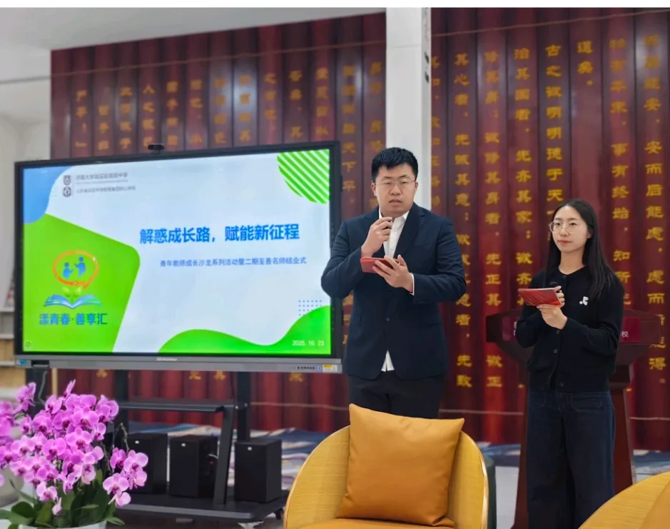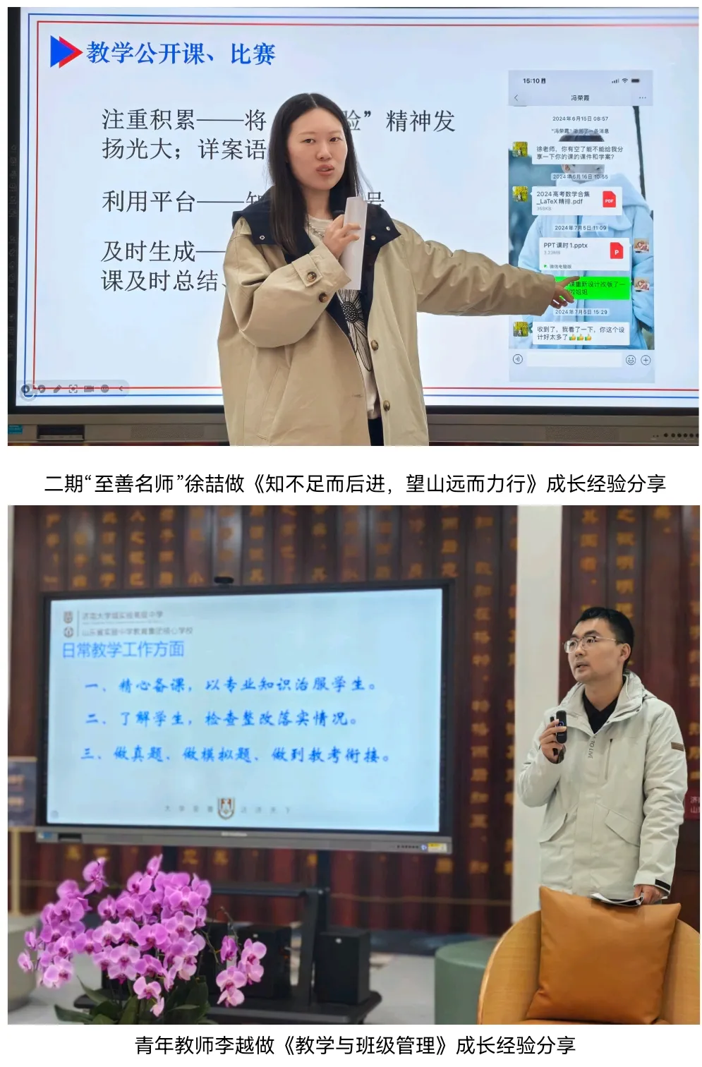 本次 “漾青春・善享汇” 青年教师成长沙龙系列活动暨二期“至善名师”结业式在温馨而振奋的氛围中圆满落幕。此次活动不仅为青年教师搭建了成长交流的平台,也进一步强化了名师的引领作用,为学校教师队伍建设注入了新的活力。相信在名师的引领与互助的氛围中,我校青年教师定能在教育之路上稳步前行,以更饱满的热情、更专业的素养,赋能教育新征程,书写教育新篇章。
