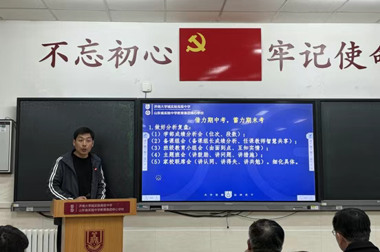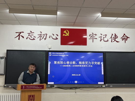 11月19日,济南大学城实验高级中学高二学部期中教学质量分析会在学校多元厅举行。高二学部全体教职工参会,复盘期中成效、共商提质举措。学校党委副书记校长张家鹏、分管副校长刘威、教科室主任张吉山等出席会议。会议由学部主任吕全心主持。