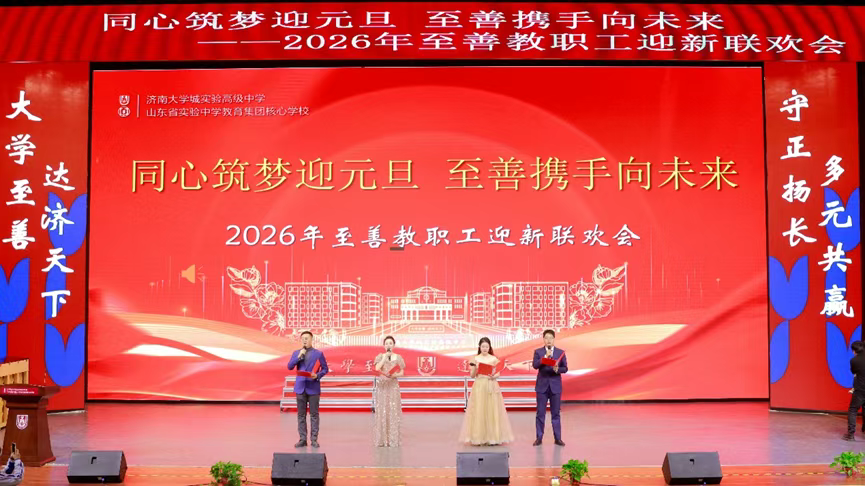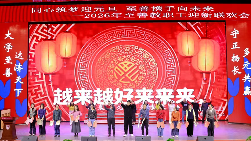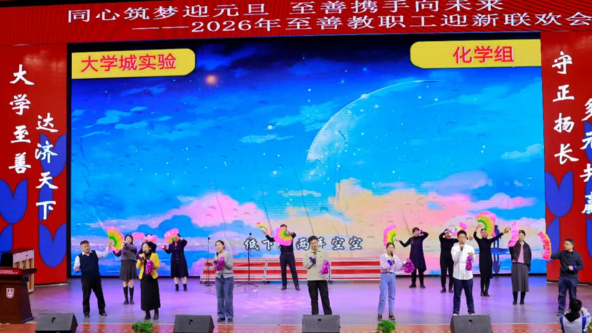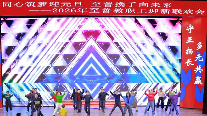 为迎接2026年元旦的到来,丰富教职工文化生活,凝聚团队力量,展现教师风采,12月30日下午,大学城实验高中立足“家国文化”建设,以“同心筑梦迎元旦,至善携手向未来”为主题,在大雅厅隆重举行2026年教职工元旦联欢会。