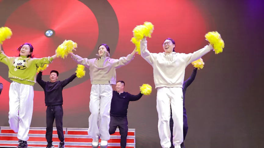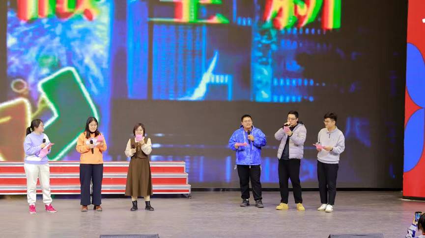 政治组的《遇见·马上思政》用歌声诠释“思政不在远处,就在每一次清醒的选择、每一次温暖的相信里”,化学组的《不要慌太阳下山有月光》则以欢快歌舞展现了“化学反应”般的团队活力。压轴的“真心英雄”神秘节目,6位领导默契配合,用深情演绎为晚会画上圆满句点。其间,趣味横生的至善大转盘再次将联欢推向高潮。