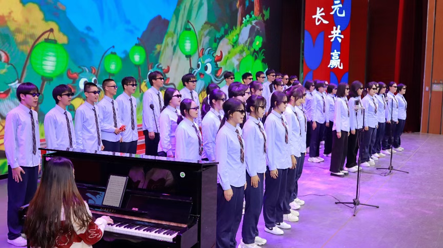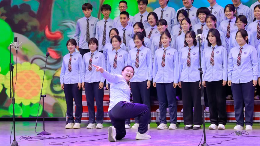 体育、心理组、医务室的老师们以活力舞蹈展现健康向上的精神风貌,音乐组、美术组、技术组的歌曲联唱则用悠扬旋律传递教育温度。特别值得一提的是,至善之声合唱团的《大王叫我来巡山》让全场笑声不断,同学们纯净的歌声为晚会增添了别样童趣。