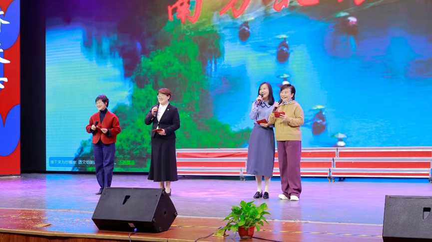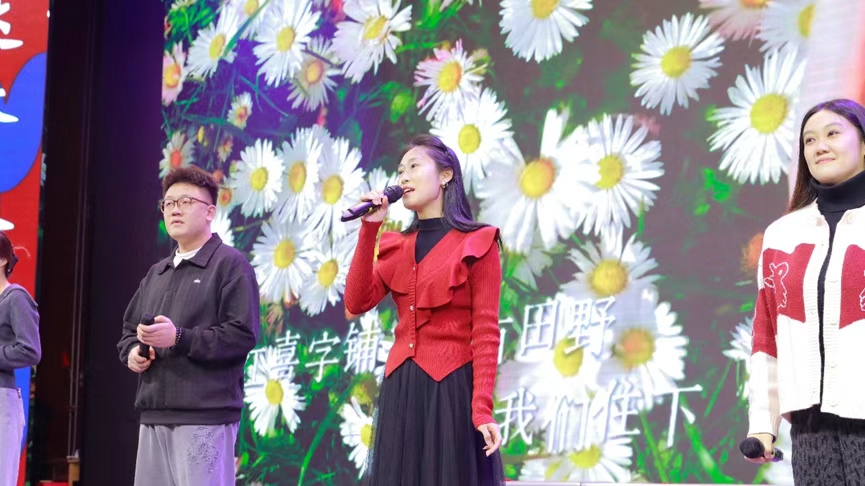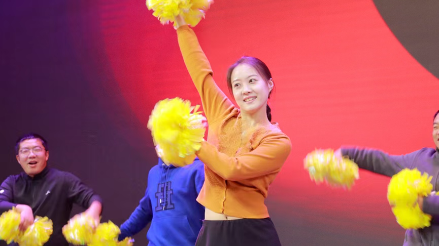 地理组的《库里之歌》活力四,数学组的《教师阵线盟》以幽默改编唱出教师生活的酸甜苦辣,语文组的《越来越好》歌舞相融,将文字化作歌声,情感融入舞步,描绘出一幅“文心舞韵颂华年,春风词笔绘新篇”的动人画卷。