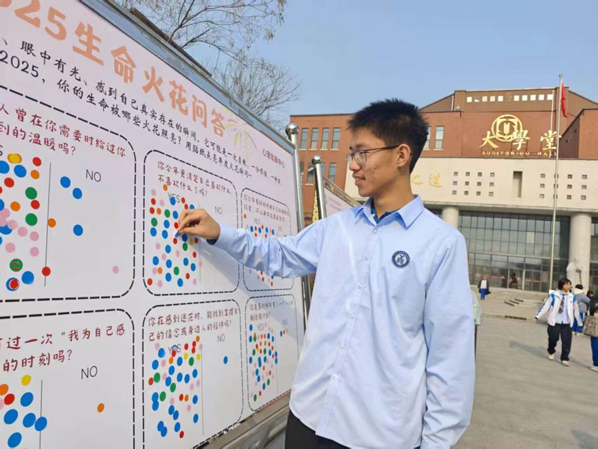 活动现场暖意融融,处处洋溢着向上向善的青春气息。生命火花趣味问答环节,以轻松互动的形式引导学生梳理自我认知,大家踊跃参与、积极应答,在简单问答中探寻内心热爱,主动为自己贴上专属成长标签,定格当下的心灵感悟。