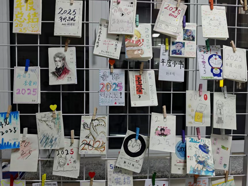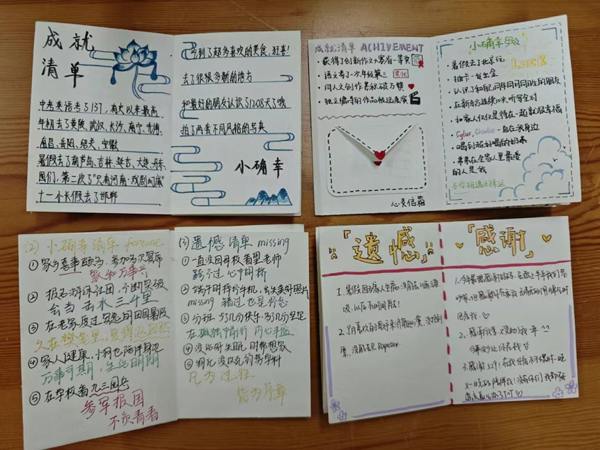 回望过往方知来路,展望未来更明方向。本次活动还特别展出了学生心理课上完成的年度小书,这些作品既是同学们对过去一年的复盘总结,更是对新一年的热切展望,字里行间满是青春的思考与成长的感悟。驻足参观的同学们认真品读、相互交流,在他人的文字里汲取力量,在自我的回望中坚定前行。