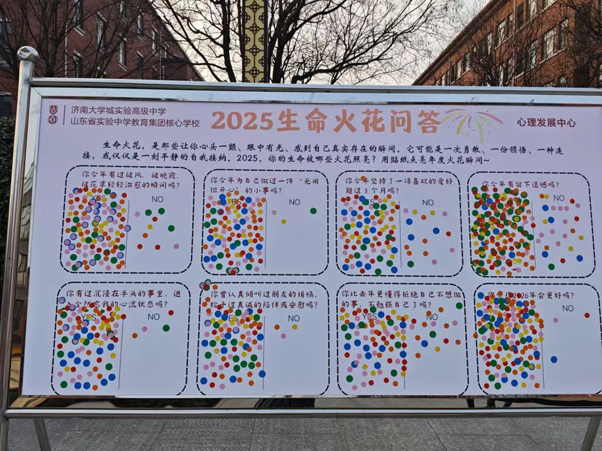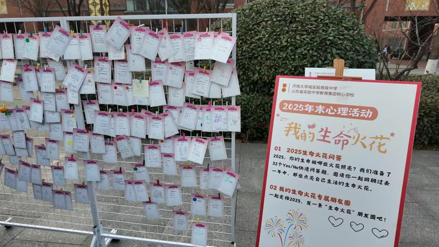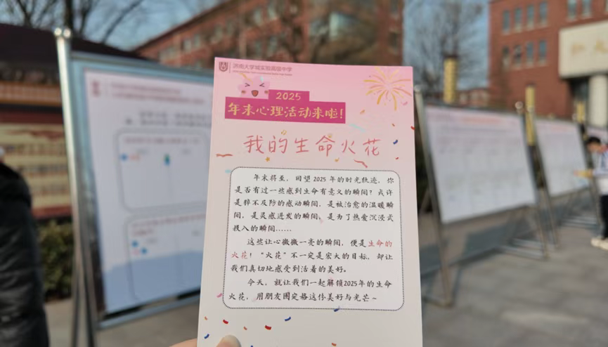 新岁序开,初心如炬。为引导学生回望过往、立足当下、展望未来,在辞旧迎新之际,济南大学城实验高级中学以“我的生命火花”为主题开展系列心理赋能活动,用多元形式点亮学生心灵,让青春力量在岁末年初热烈绽放。
