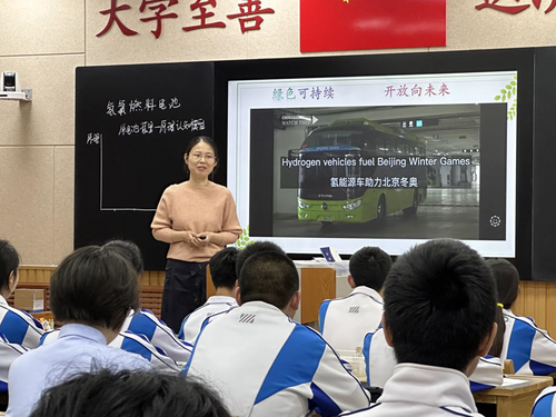 曹慧老师首先执教了《氢氧燃料电池——基于原电池原理的研究》一课,以原电池原理认知模型为基础,引导学生自主设计制备氢氧燃料电池,提升实验分析与问题解决能力。曹慧老师以扎实的教学功底、精准的知识讲解,将抽象的化学知识转化为具象的教学内容,既注重学生实验能力的培养,又兼顾课堂逻辑的层层递进,充分展现了资深教师的教学魅力与专业素养,为新教师搭建了清晰的学习标杆,为全体参会教师呈现了一场高质量的教学示范。