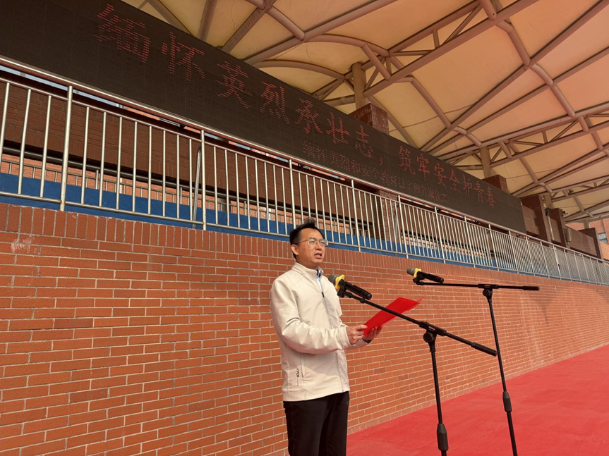 副校长刘威作国旗下讲话,围绕 “坚守身心、坚守规矩、坚守初心”提出要求,叮嘱师生重视身心健康、严守安全规范、传承英烈遗志,以实际行动守护校园平安,以奋进姿态告慰革命先烈。