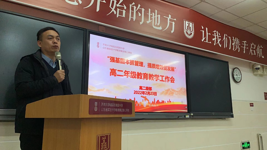 赵绪安首先进行上学期教学工作总结。他表示,在学校领导的关注以及高二全体教职工的努力下,高二年级顺利实现合格考全过关,各学科成绩稳中有进,尤其在尖优生培养方面取得较大突破,随后部署了本学期双高班管理、尖优生培养、学生课堂常规管理、学科组建设、高二高三衔接等几项重要工作。同时强调日常课堂教学作为提质增效的重要途径之一,应切实贯彻“能在课上完成的任务决不拖到课下”。