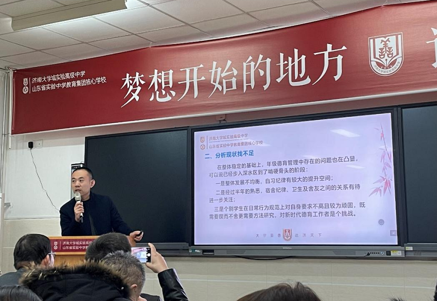 纵使千帆逐涛浪,前路直挂引明灯。校领导高屋建瓴为新学期教育教学工作指明方向。郭福祥强调,我校制定的各项政策是我校核心领导团队苦心经营的智慧结晶,均是基于我校教育教学工作实际情况,结合我校特色办学理念提出来的,其创新性和适用性在同级学校中处在前列。好的政策也需落地实施。班主任作为班级第一责任人,应充分发挥班级核心领导作用,耕好班级责任田,积极大胆协调任课老师,培育好每一棵祖国的萌芽,促进他们成长为国家栋梁之材。他坚信只要每位老师按照学校制度把工作落在实处,一定会平稳度过衔接的关键期,取得更加优异的成绩。