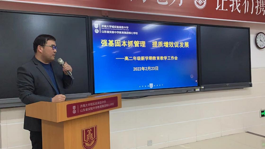 2月23日下午,大学城实验高中举行了高二年级全体教师新学期教育教学工作会。党委书记、校长郑玉香,副校长姚庆、郭福祥,教学部主任康辉、德育部主任王春强、年级主任赵绪安等参加了本次会议,会议由年级主任张新府主持。