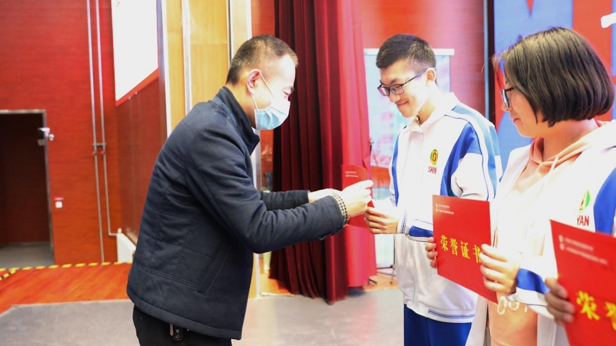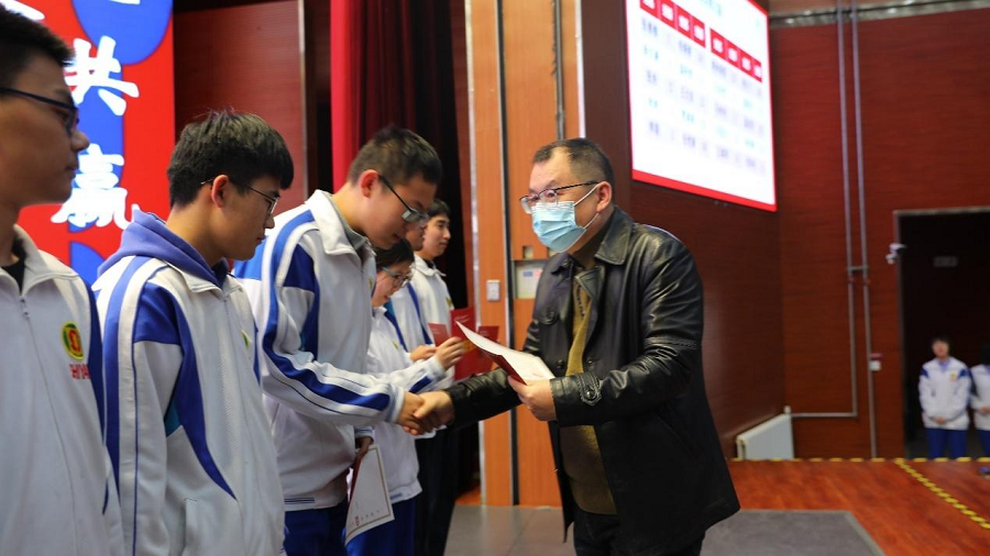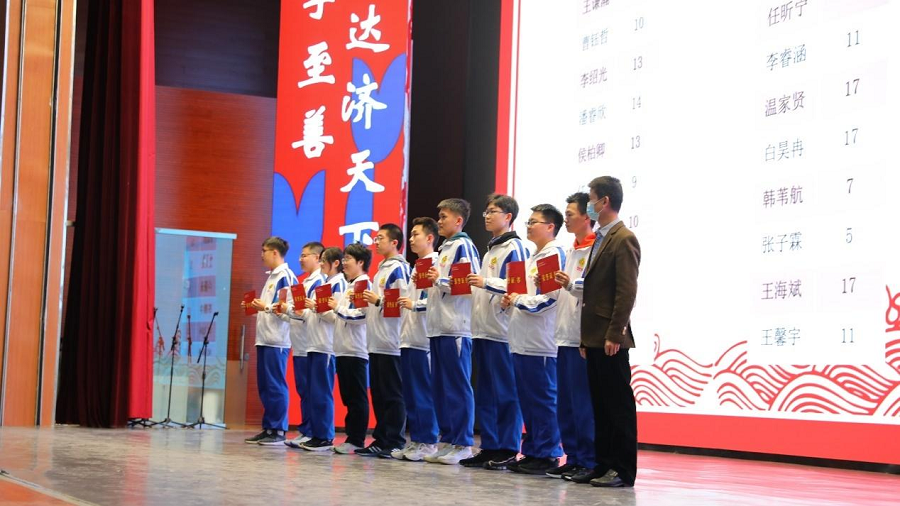 大会在隆重表彰了年级至善之星和各学科至善之星,至善学子们依次上台领奖,陪伴学子们一直前行的2020级管理团队和全体班主任老师为他们颁奖并合影留念。
