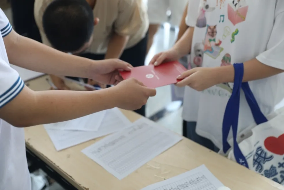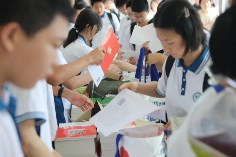 报到现场高效有序又惊喜连连。新生们首先领取了高中生涯的第一份“见面礼”——精美的录取通知书及印有学校标识的精美帆布袋等特色文创产品。指尖刚触到录取通知书,手机随即接入关键资源:扫码加入暑期学科导师群,为“初高”衔接学习铺好“云”端桥梁。