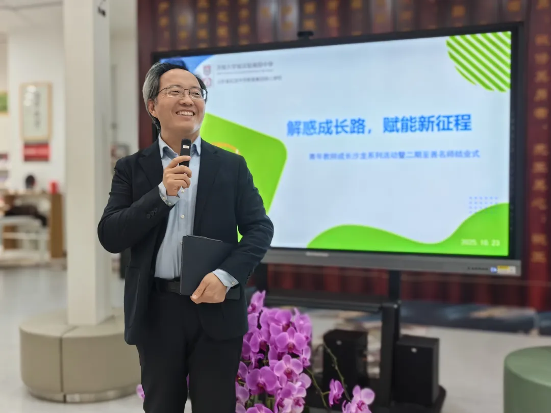 活动最后,校长张家鹏勉励青年教师:“解惑成长路” 需要教师们不断学习、勇于探索,“赋能新征程” 则需要学校搭建更多优质平台,也需要名师发挥传帮带作用。他指出,青年教师是学校的未来和希望。他希望“至善名师”继续做好“引路人”,用心指导青年教师成长;青年教师们则要以名师为榜样,教学中注重实践、反思、内化,主动创造幸福,始终以学生为出发点,做好教育教学工作。