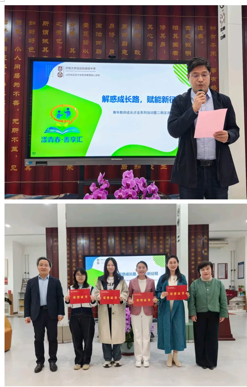 本次 “漾青春・善享汇” 青年教师成长沙龙系列活动暨二期“至善名师”结业式在温馨而振奋的氛围中圆满落幕。此次活动不仅为青年教师搭建了成长交流的平台,也进一步强化了名师的引领作用,为学校教师队伍建设注入了新的活力。相信在名师的引领与互助的氛围中,我校青年教师定能在教育之路上稳步前行,以更饱满的热情、更专业的素养,赋能教育新征程,书写教育新篇章。