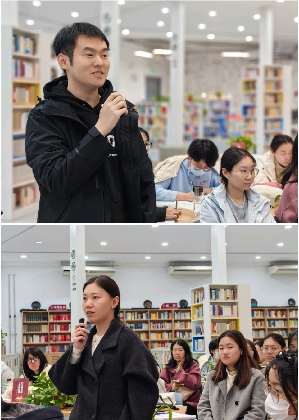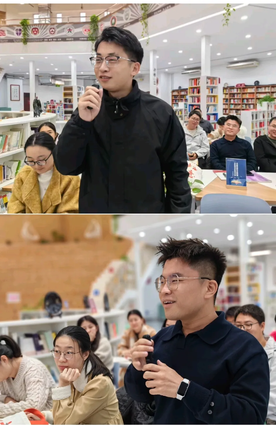 活动伊始,徐喆、李越两位优秀青年教师先后登台,分享自己的教育成长之路。徐喆老师结合自身从教经历,讲述了自己从初登讲台的青涩到逐渐从容的蜕变过程,她提到:“每一次课后反思、每一次向老教师请教,都是成长路上的宝贵财富。” 李越老师则聚焦 “教学与班级管理经验”,他表示:“青年教师要敢于尝试、勇于创新,在探索中找到适合自己的教学风格,在班级管理中要充分发挥学生主动性。”两位老师的分享真挚而接地气,引发了在场青年教师的强烈共鸣。