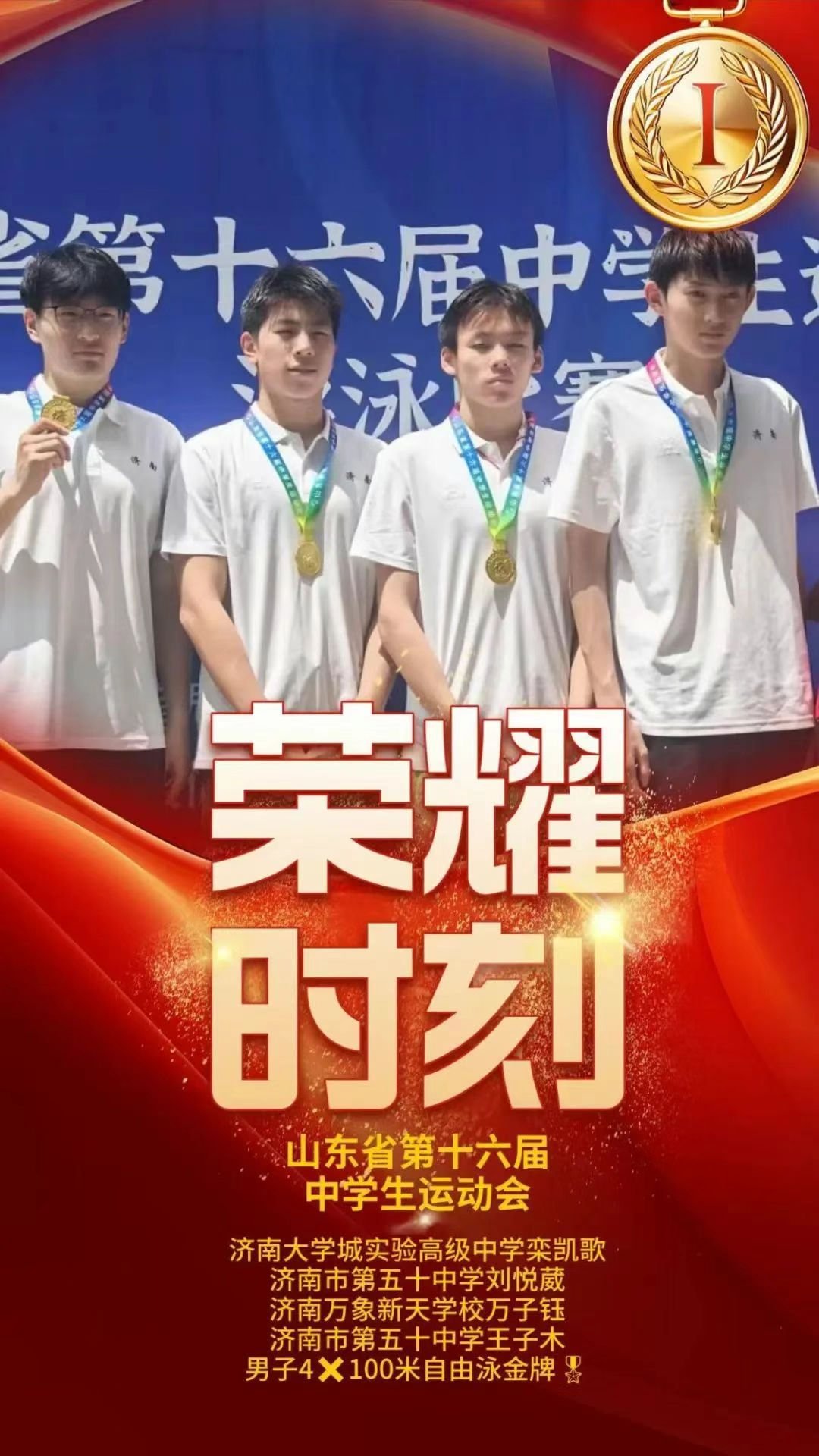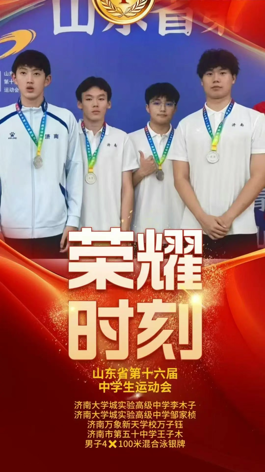 在刚刚落幕的第十六届山东省中学生运动会游泳赛场上,济南大学城实验高中六名学子代表济南市出战,以2枚金牌、3枚银牌、2枚铜牌的亮眼成绩单,为济南队立下赫赫战功。